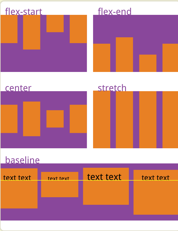 align-self会对当前flex行中的flex元素,并覆盖align-items的值。