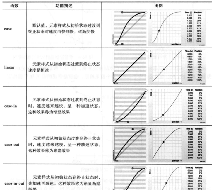 transition-timeing-function: 指定过渡函数