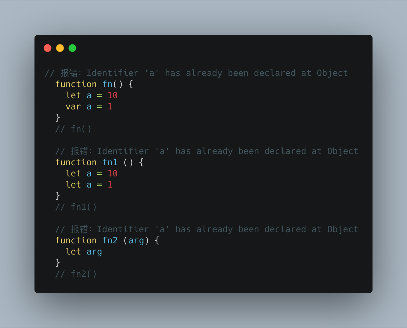 let 不允许在相同作用域内重复声明同一个变量。