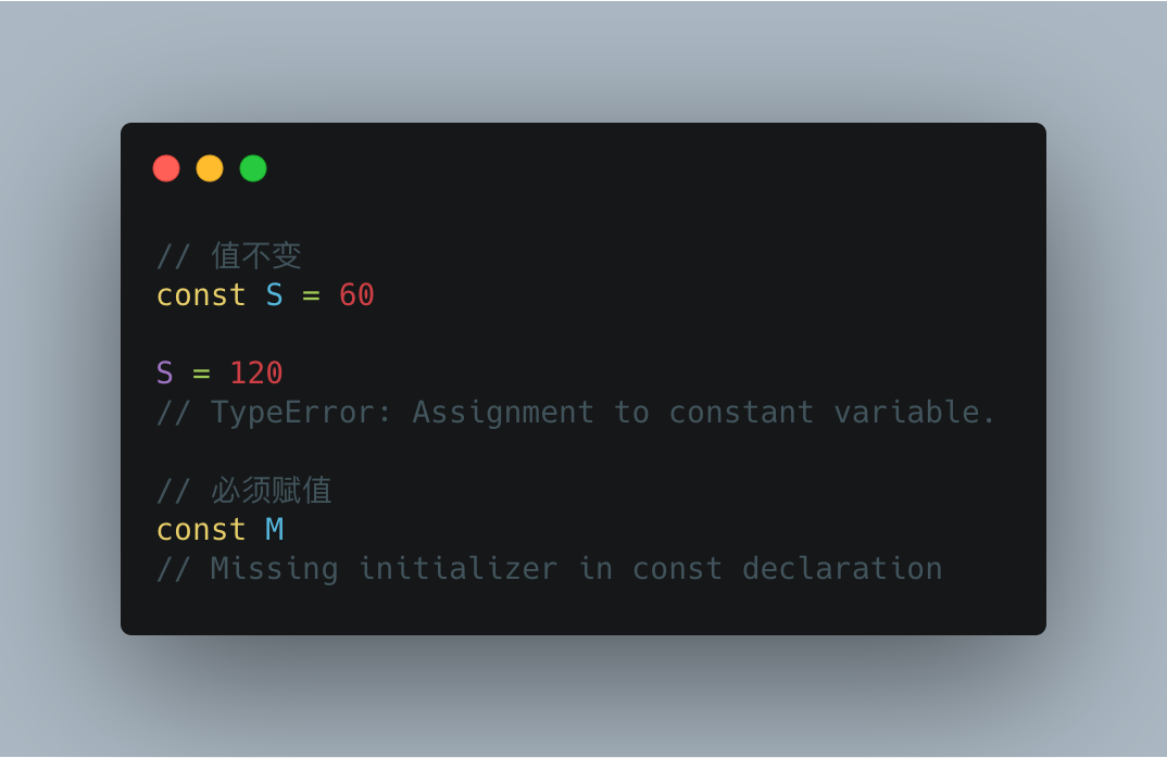 const 除了值不能变和只读,其他的特性跟 let 是一样的,同样是块级声明、不存在变量提升和不允许重复声明。在这里需要注意一点的是,声明常量的时候要必须确保这个值是固定不变的。