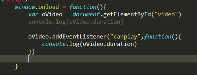 注意:video标签拥有着额外的属性。如果想读取duration()总时长,必须监听canplay事件